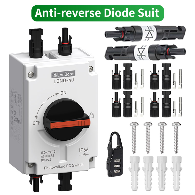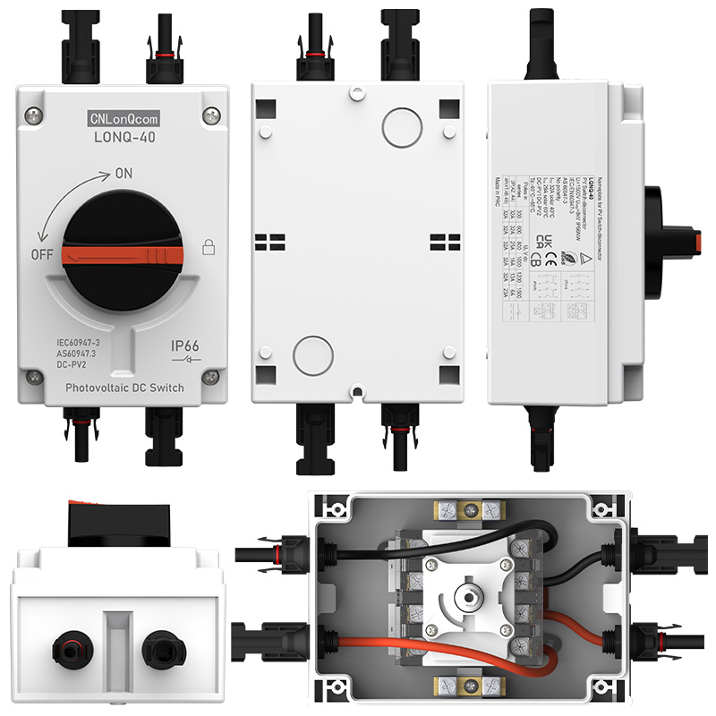 ● CNLonQcom 1500V 32A सम्मको PV स्विच-डिसकनेक्टर्सको उत्पादनमा विशेषज्ञता हासिल गर्ने एक निर्माता हो, जुन 1kW देखि 20kW सम्मको आवासीय वा व्यावसायिक फोटोभोल्टिक प्रणालीहरूको लागि डिजाइन गरिएको हो। यी स्विचहरू सौर्य प्यानलहरू र चार्ज कन्ट्रोलरहरू, सौर्य प्यानलहरू र इन्भर्टरहरू, वा सौर्य प्यानलहरू बीचमा स्थापना गर्नका लागि हुन्।